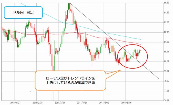 このためテクニカルでは先週からのトレンドライン(日足)の「上抜け」がより明確になってきています。