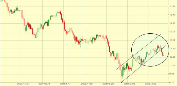 3/17の95円77銭から約10円上昇したドル/円もこのあたりで息切れしたのでしょうか?