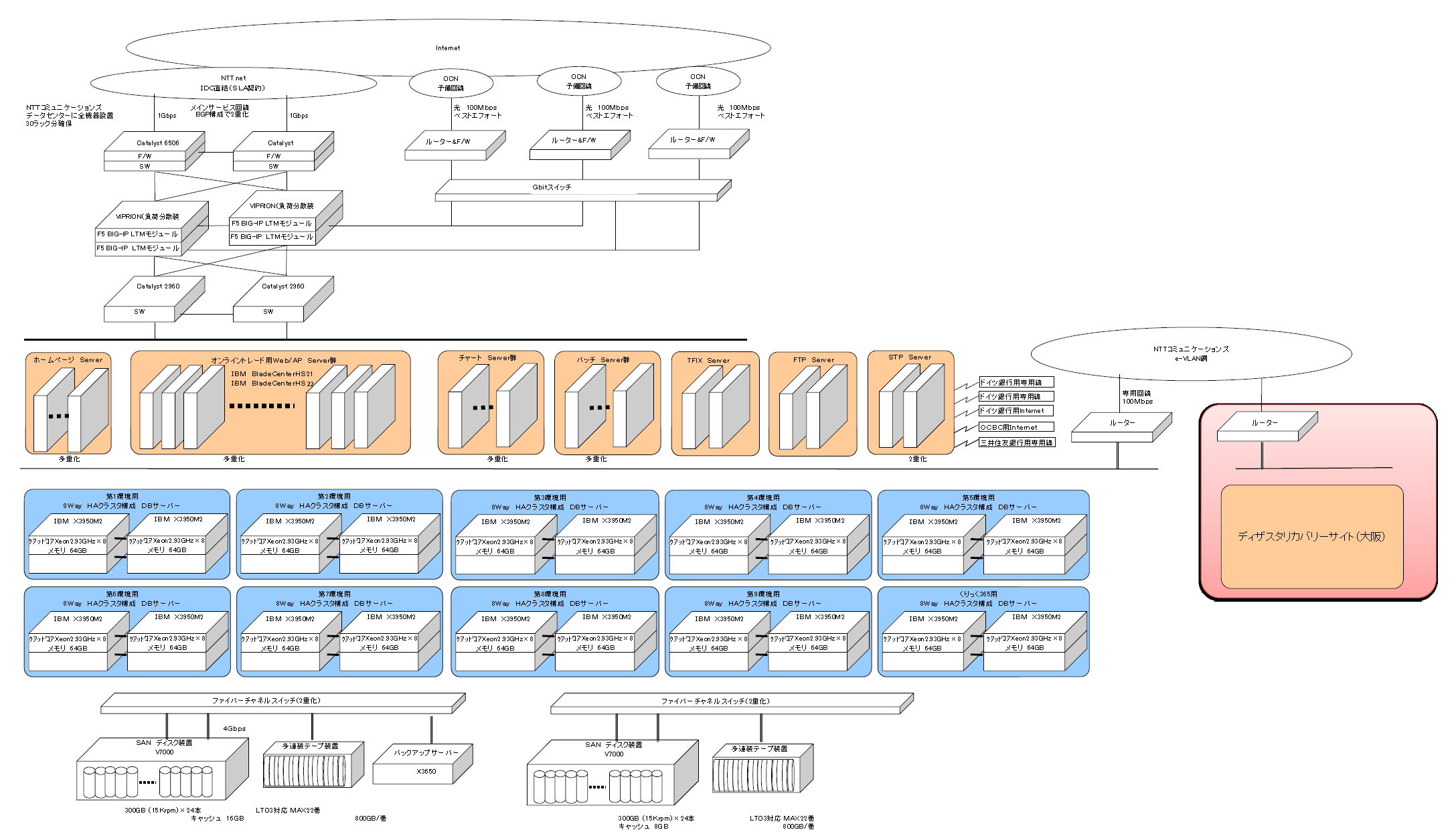 お客様に最適な環境でのお取引を行って頂くため、またその環境を常に維持するため、お客様の口座数・お取引の量の拡大を上回ることを基準にシステムの強化に努めさせて頂いております。 システム拡張の基本方針は、従来の『ビルドアップ手法等によるスケールアップ方式』ではなく『スケールアウト方式』を採用しております。簡単に言えば、『サーバー群を並列に並べて、大量のお取引データに対する処理の負荷を分散させる』という方式になります。